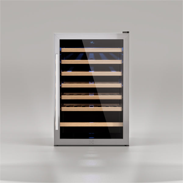 Preserve e desfrute seus vinhos na temperatura ideal com tecnologia de ponta. Ajuste entre 4 °C e 18 °C, graças ao display digital. Sistema anti-vibração e temperatura estável para a maturação perfeita. Design elegante em aço inoxidável, vidro anti-UV e luz LED. Silenciosa e com 6 prateleiras de madeira.