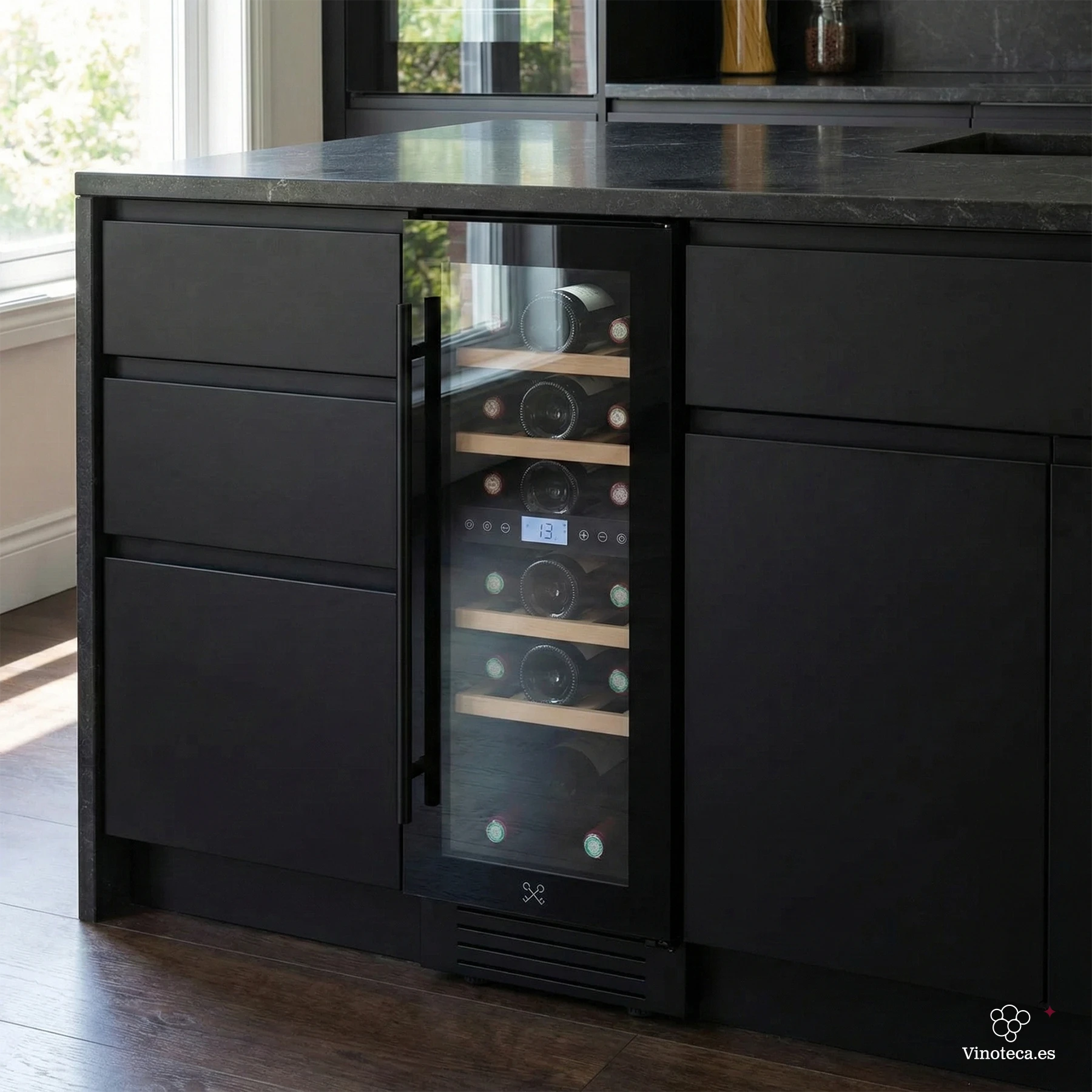 - Porque permite desfrutar de cada vinho no ponto exato sem renunciar ao espaço: o seu formato compacto sob bancada adapta-se perfeitamente às cozinhas atuais, enquanto as duas zonas independentes ajudam a manter diferentes vinhos prontos a servir à temperatura adequada.