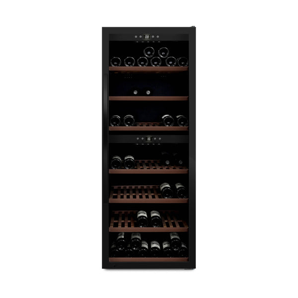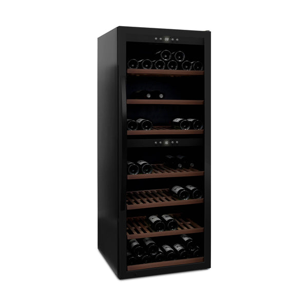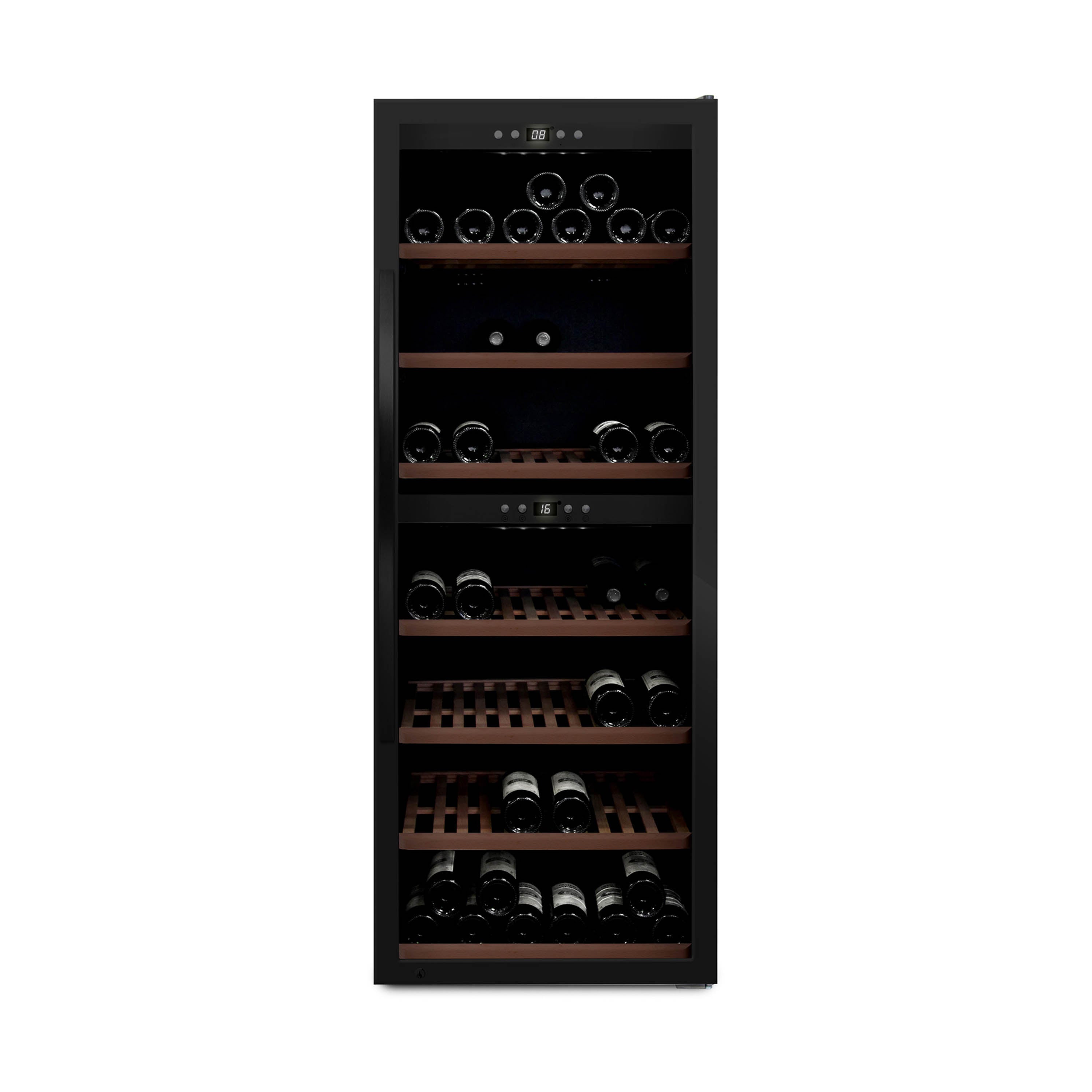 Apresentamos a adega de vinho mQuvée WineExpert 126 Fullglass Black, uma elegante e moderna solução de armazenamento para 126 garrafas de vinho. Esta adega possui uma porta de aço inoxidável, puxador ergonômico, porta de vidro com proteção UV e prateleiras exclusivas de madeira. Ela possui duas zonas de temperatura ajustáveis, refrigeração por compressor, ventiladores internos para uma temperatura interna mais uniforme, autodefrost, sistema inverno, botão de ligar/desligar, luz LED com interruptor ligar/desligar, e display eletrônico. Esta adega é a escolha ideal para quem deseja preservar o sabor e a qualidade de seu vinho.