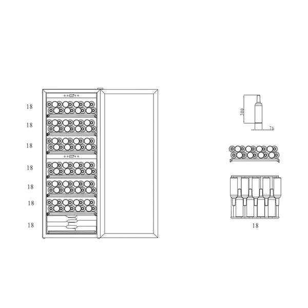 Vinoteca elegante e moderna da marca europeia mQuvée. Este refrigerador de vinho possui uma porta em aço inoxidável, puxador ergonômico, porta de vidro com proteção UV e prateleiras exclusivas de madeira. O refrigerador de vinho possui duas zonas de temperatura ajustáveis e tem capacidade para 126 garrafas.