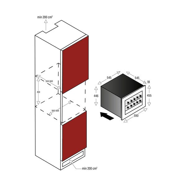 • Cave de vinho integrável na coluna da cozinha para 23 garrafas