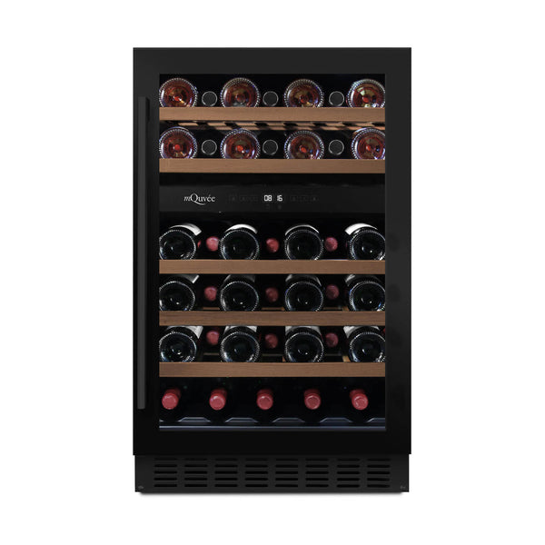 Inclui duas zonas de temperatura e 5 prateleiras extensíveis de madeira com espaço para 38 garrafas. A temperatura é regulada no visualizador digital, que também permite o ajuste luminoso das fileiras de LED do interior da adega. A adega está equipada com um compressor de inversão, que oferece menor consumo, regulação térmica mais rápida e nível de ruído mais reduzido e uniforme.
