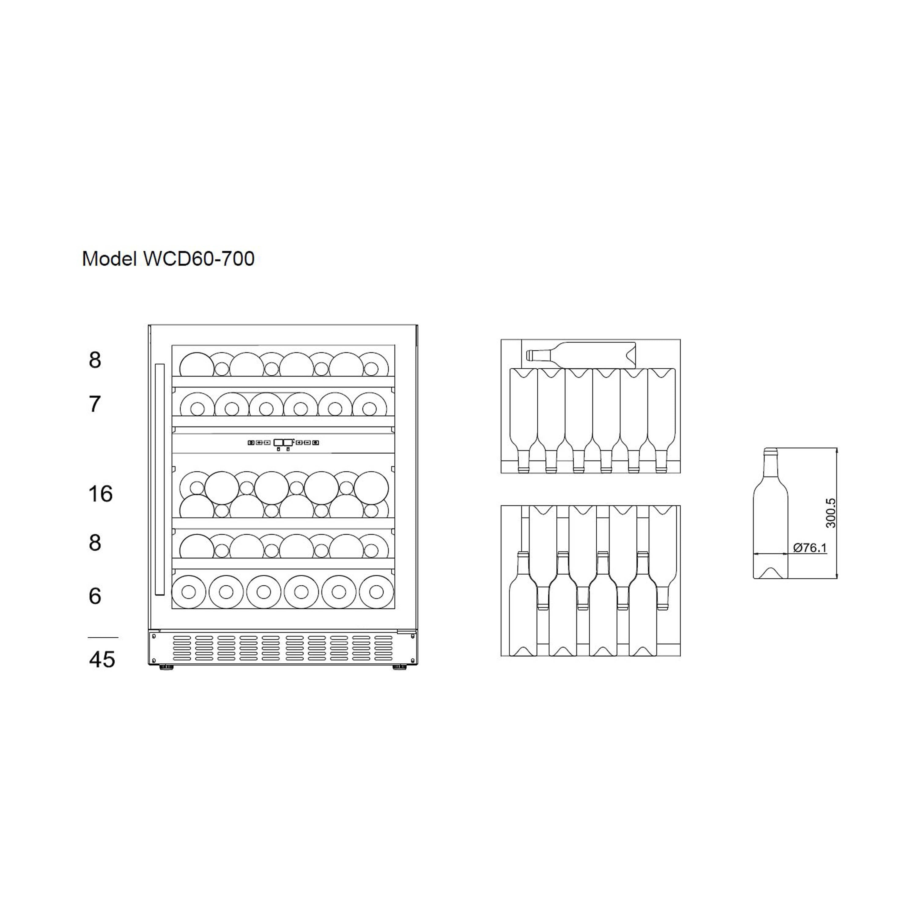 A vinoteca WineCave inclui duas zonas de temperatura, quatro prateleiras extensíveis e espaço para 45 garrafas. A temperatura e a iluminação são facilmente controladas através da tela sensível ao toque e possui um nível de ruído de apenas 36 dB, o que a torna ideal para aqueles que procuram um modelo de vinoteca silencioso.