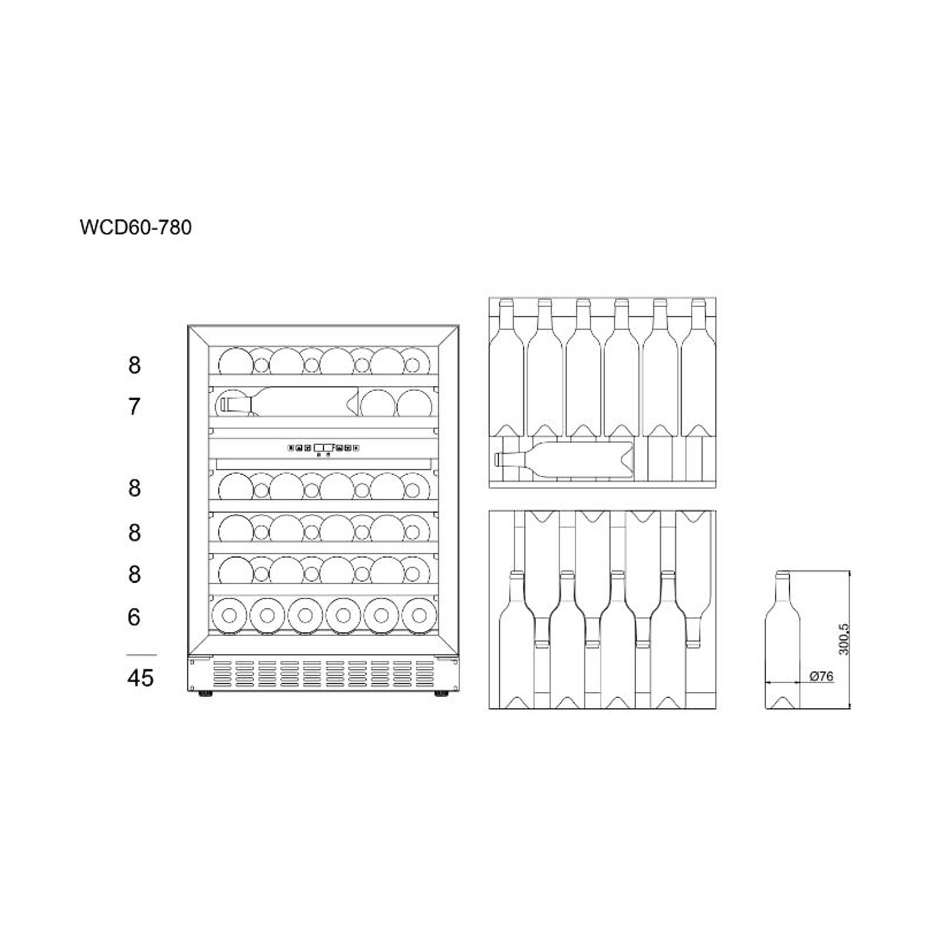 A Cave não se adequa à altura da sua cozinha? Essa cave de vinho também está disponível com altura de porta de 700 mm e 720 mm.