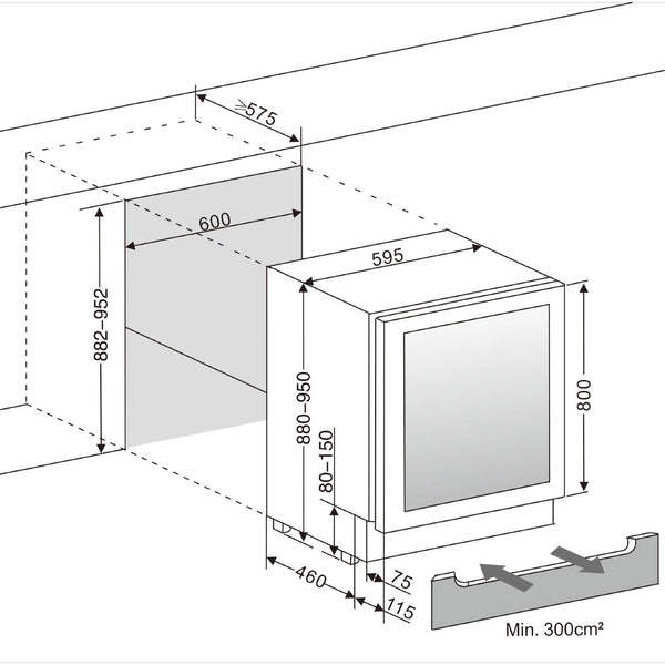 A vinoteca tem uma altura de porta de 800 mm, adaptada ao mercado europeu e perfeita para a maioria das cozinhas. Sua porta em preto com superfície única de vidro completo se funde com a estética de qualquer cozinha, oferecendo uma integração sofisticada e refinada. Basta colocar suas garrafas e deixar a vinoteca fazer sua mágica.