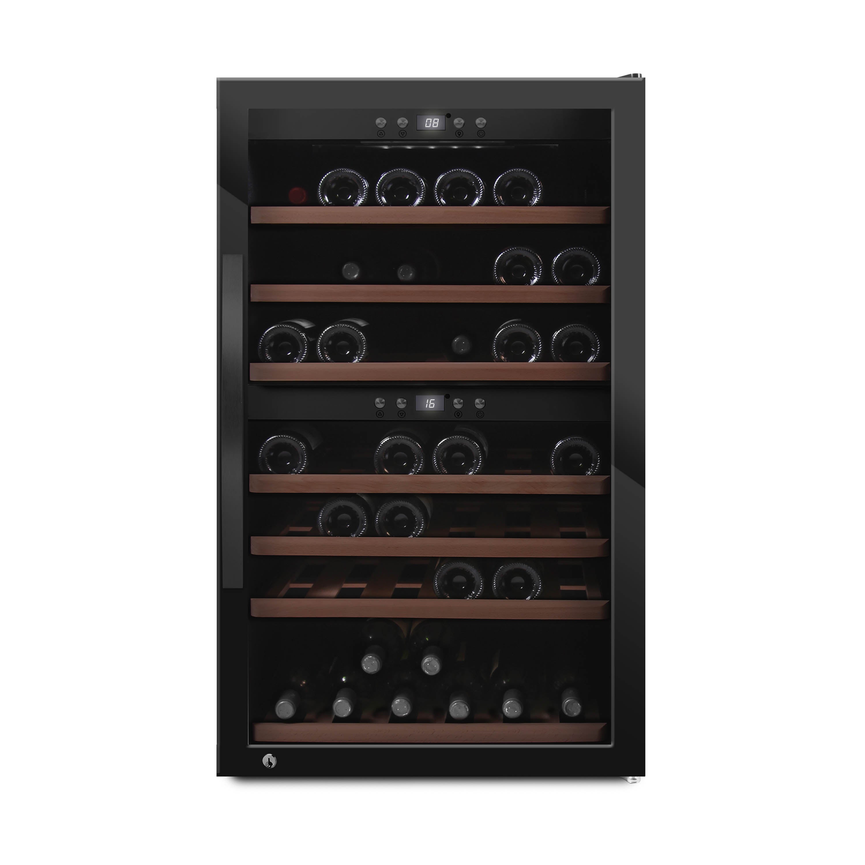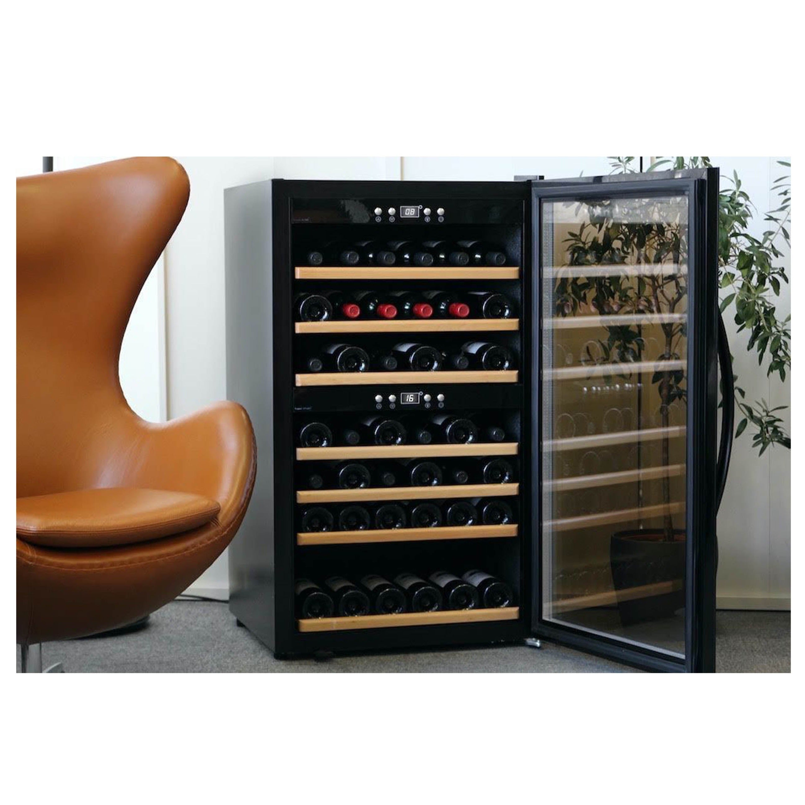 WineExpert 66 é uma adega independente que cumpre sua promessa de oferecer qualidade. Com prateleiras estendíveis de madeira que deslizam suavemente sobre trilhos para maior estabilidade e uma tela digital para mostrar ajustes, essa adega é fácil de usar.