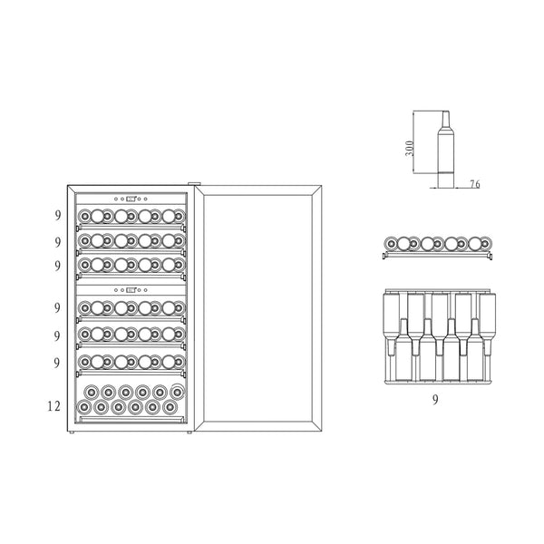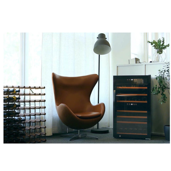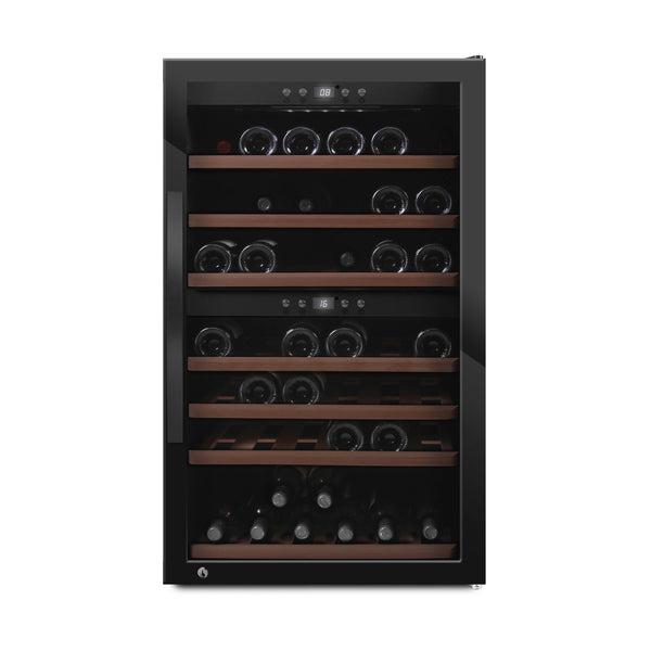 Possui duas zonas de temperatura e espaço para 66 garrafas, com uma área especialmente ampla para vinho branco, perfeita para aqueles que desejam desfrutar tanto de tintos quanto de brancos. A adega também possui uma porta de vidro com proteção UV e sistema de trava, e um design elegante e harmônico sem juntas. Além disso, pode ser controlada com botões reais.