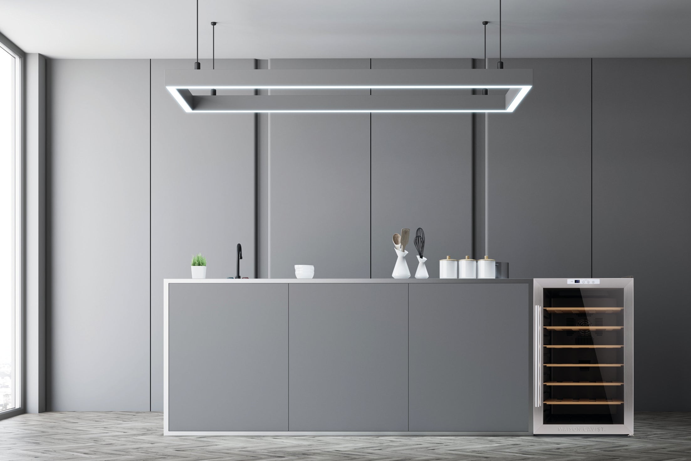 Seu vidro colorido e sua luz LED permitem que você veja suas garrafas mantendo-as afastadas dos raios UV e da luz direta. Equipada com uma tecnologia silenciosa, esta adega oferece conforto extra e traz um toque de elegância e requinte à sua casa com seu design elegante.