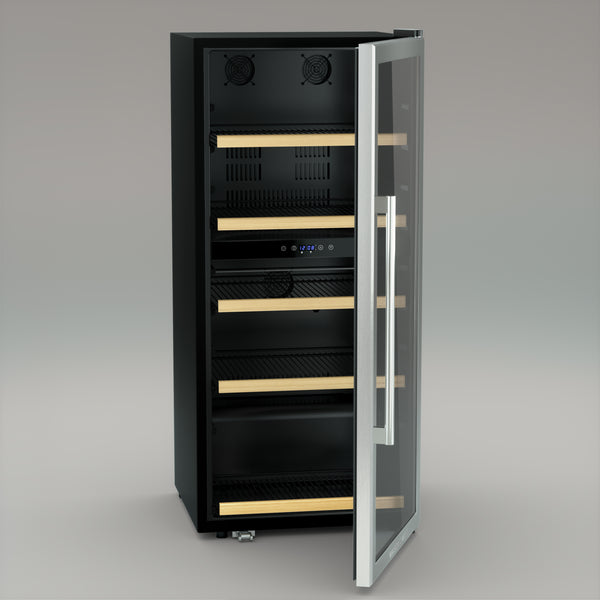 Descubra a Cave de Vinho 91 Garrafas CAVCD91, a aliada perfeita para realçar seu apreço por vinhos excepcionais. Com seu design elegante e tecnologia de ponta, essa adega classe A oferece duas zonas de temperatura, display digital, vidro anti-UV e sistema anti-vibração. Aprecie seus vinhos na temperatura ideal, de 5°C a 18°C, enquanto adiciona um toque de requinte à sua casa.