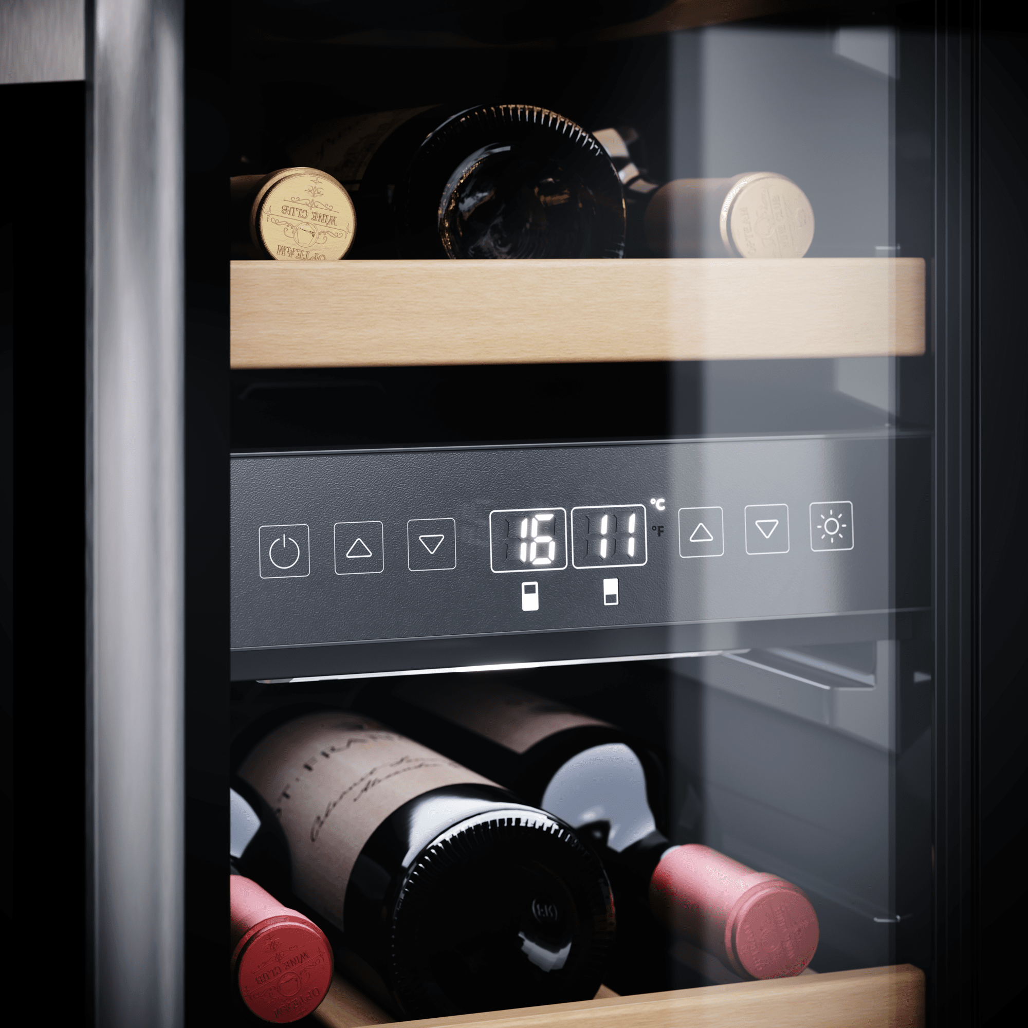 - Filtro de carbono embutido e controle automático de umidade (50–70%) – criam o clima perfeito para armazenar e envelhecer o vinho