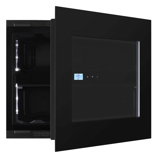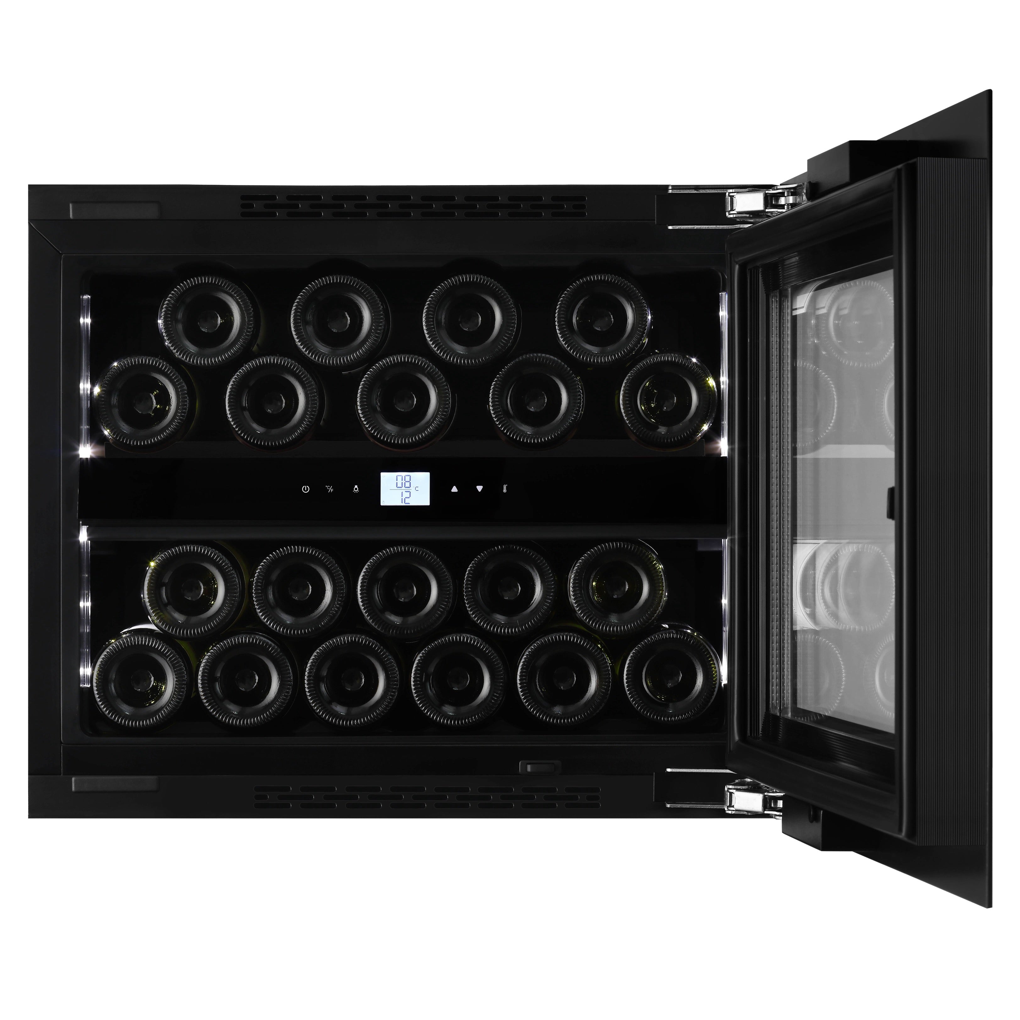 O seu design moderno inclui um sistema de porta push-open, que elimina a necessidade de puxadores para um aspeto minimalista e sofisticado. A porta reversível com triplo vidro anti-UV protege as garrafas dos raios prejudiciais, garantindo uma conservação perfeita.