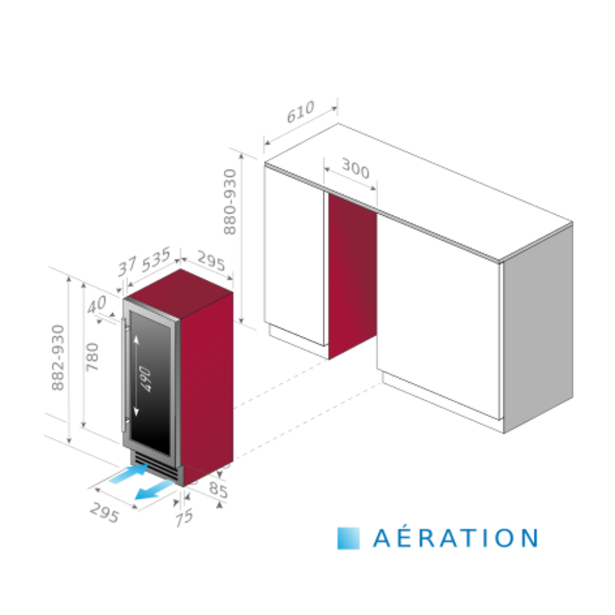 • 88 cm sob o balcão: Altura mínima sob o balcão para porta com uma altura de 78 cm.