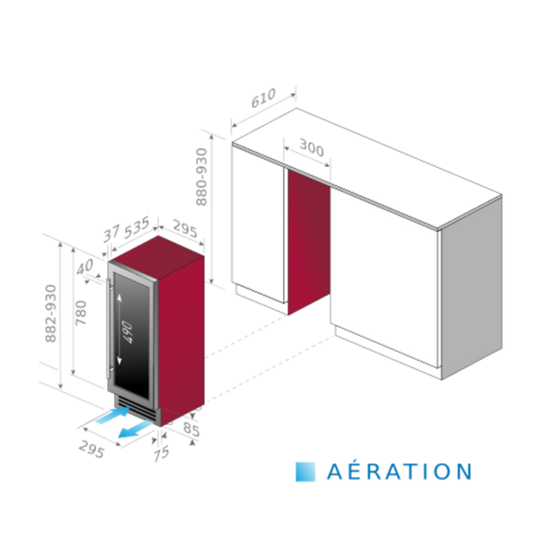 • 2 zonas de temperatura: zona superior para vinhos tintos (+ 10 ° C - + 18 ° C), zona inferior para vinhos brancos (+ 5 ° C - + 10 ° C)
