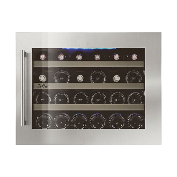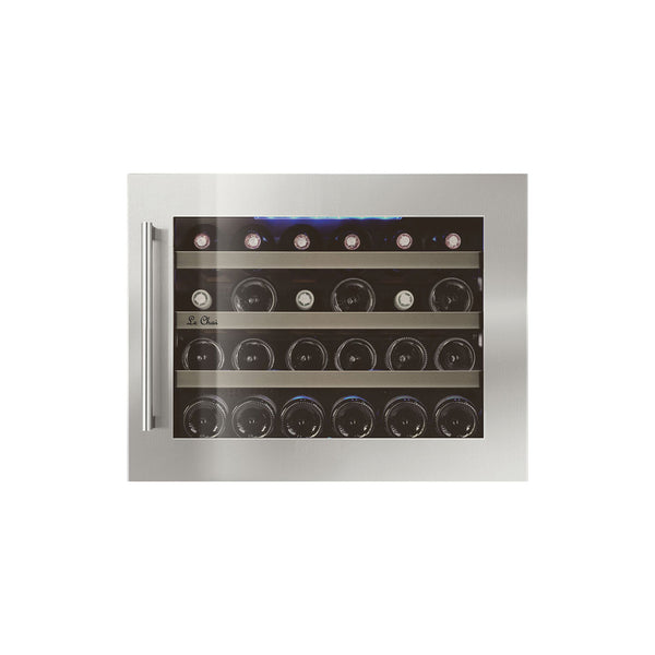 Descubra a elegante Cave de Vinho Integrável LM245 inox, com capacidade para 24 garrafas. Regule a temperatura entre 5ºC - 22ºC e desfrute das portas de vidro triplo reversíveis, com tratamento anti-UV. Compressor de frio, prateleiras de madeira, iluminação LED azul e sistema antivibração. Perfeita para sua cozinha!