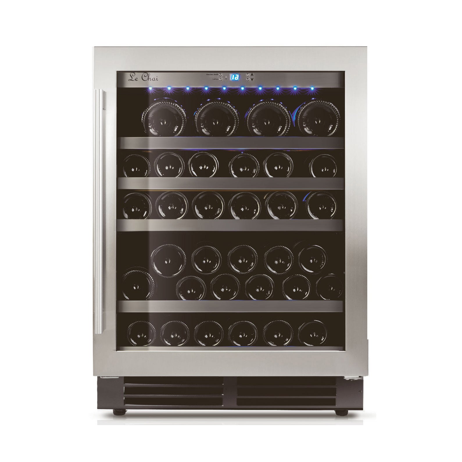 Descubra a elegante Cave de Vinho integrável 48 garrafas LM480 em inox. Com capacidade para 48 garrafas, esta vinoteca de conservação é perfeita para sua cozinha. Regule a temperatura de 5 °C a 18 °C e desfrute da porta de vidro triplo reversível com moldura de aço inoxidável. Com iluminação LED interior e sistema antivibração, mantenha suas garrafas no ponto ideal para servir