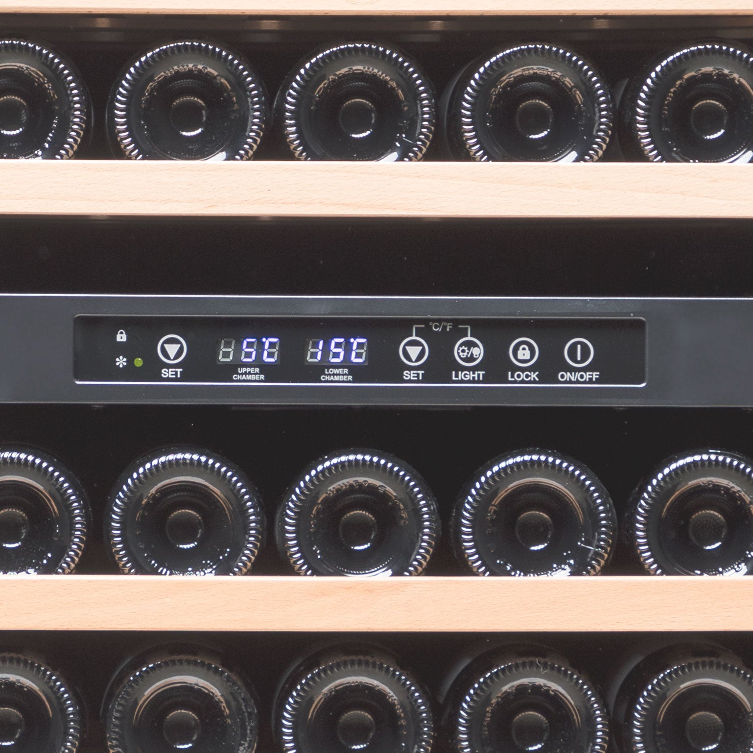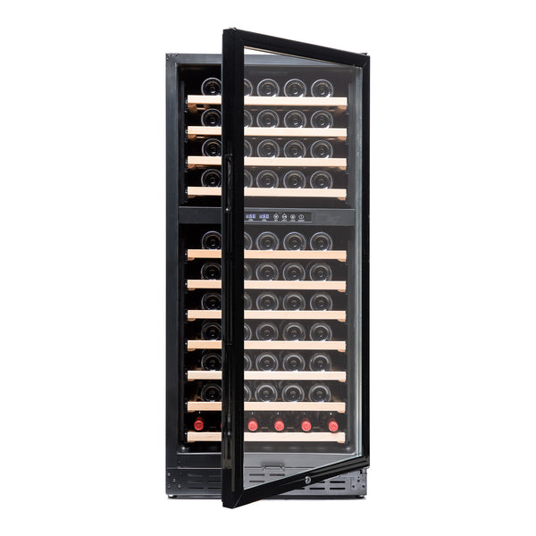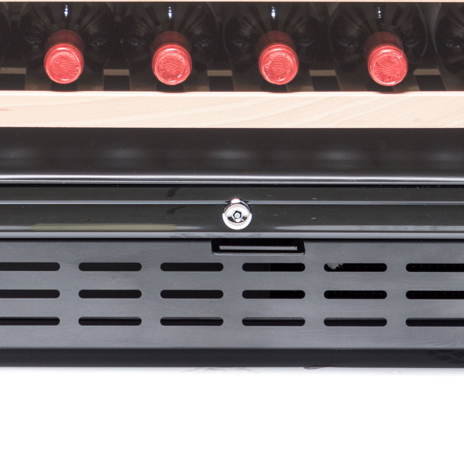 A Vinobox 110GC 2T preta é perfeita para os apreciadores de vinho exigentes. Com capacidade para 120 garrafas e duas zonas de temperatura independentes reguláveis, mantém seus vinhos sempre na temperatura ideal. Seu design elegante, fechadura segura e sistema no-Frost garantem o armazenamento perfeito.