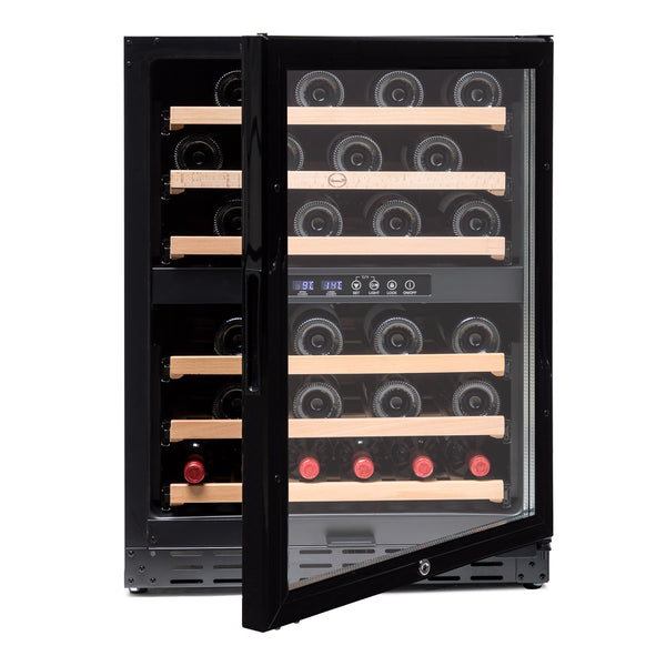 A Cave de Vinho Vinobox 50 Garrafas 2T Preta é a solução ideal para armazenar e conservar seu vinho com perfeição. Possui capacidade para 46 a 50 garrafas, duas zonas de temperatura independentes reguláveis, humidade constante, 6 estantes de madeira removíveis, e porta reversível com vidro duplo. Aproveite e compre já a sua!