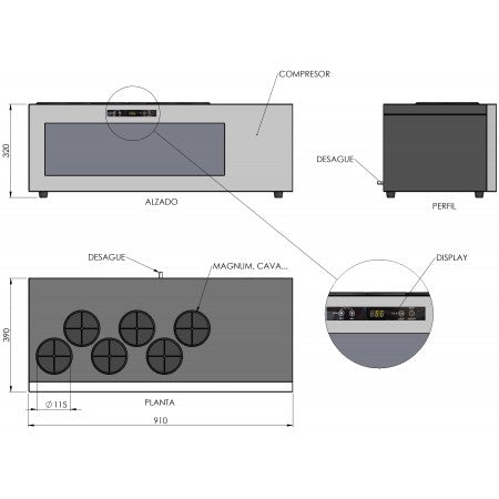 Tecnologia a frio do compressor: Com este sistema podemos atingir temperaturas muito mais baixas do que com o sistema termoelétrico, mesmo que a temperatura ambiente seja superior a 30 °C. Ideal para vinhos brancos e para vinhos tintos em climas quentes.